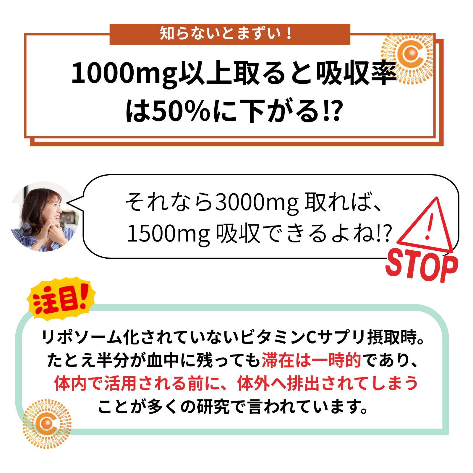 ビタミンCをリポソーム化することで一度に吸収できる リミットの限界を超え、効率よくより多くのビタミンCが生体利用されると言われています。リポナノCは日本国内最高GMPの工場で医療薬品を生産するのと同等なレベルで生産されています。